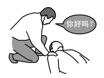 1. 在周围环境安全的情况下,拍打并呼唤伤者,检查伤者有无意识。