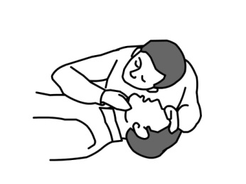2. 一只手按额头,另一只手抬下颌,检查呼吸,“看、听、感觉”,分辨有无呼吸。